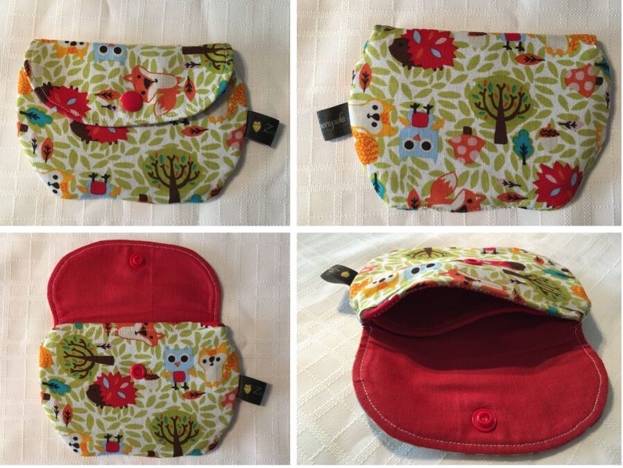 Er hat zwei Fächer und ist mit einem Druckknopf zu schließen damit nichts rausfällt.