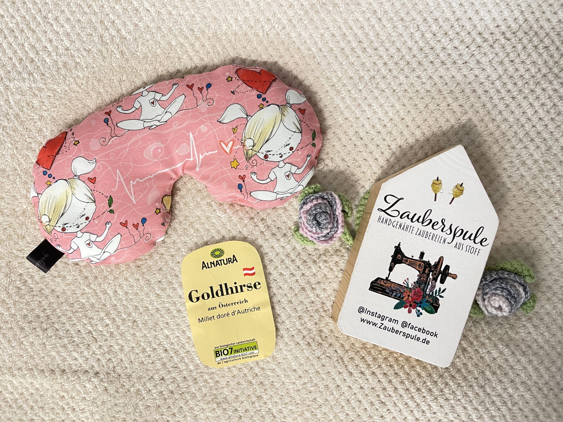 Diese Maske ist was tolles, da sie mit Raps gefüllt ist, hat sie ein angenehmes Gewicht und passt sich den Augen und dem Gesicht perfekt an, wenn man sie jetzt noch mit seinem Lieblings Öl beträufelt ( meins ist zb Lavendel)